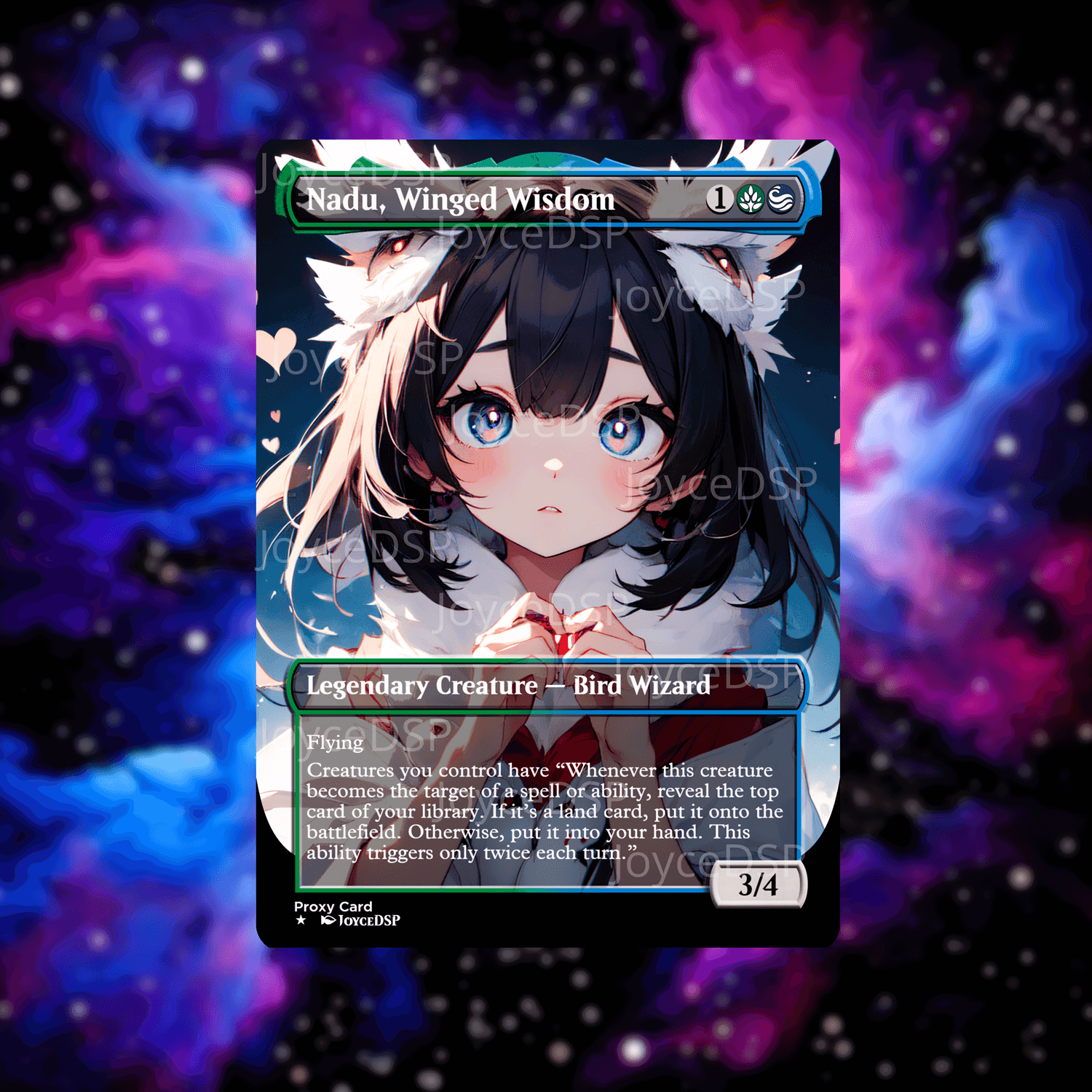 Upgrade your deck with a custom Nadu, Winged Wisdom proxy, designed for casual play and playtesting.